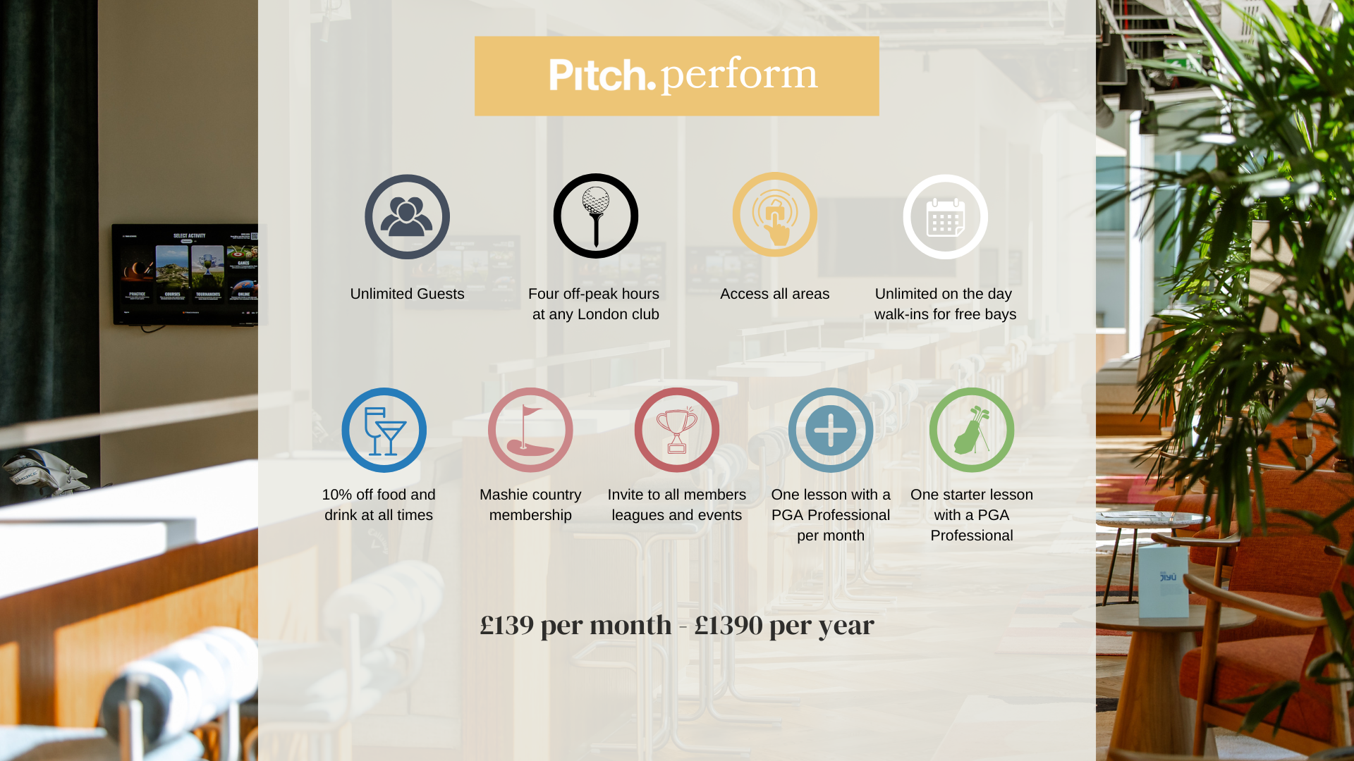 Become a Pitch member and get access to all three London venues, including Canary Wharf, with no joining fee and enjoy up to two months free!